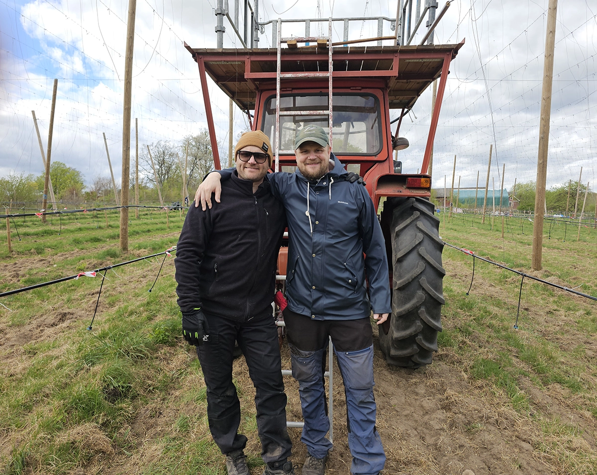 Vi är en familj som tillsammans driver Nordic Hops – jag, min fru, mina föräldrar och våra två söner på 12 år och 9 månader. Våra plantor odlas hantverksmässigt – och vi använder inga bekämpningsmedel. Marken vi odlar på har funnits i familjen i över tio generationer, och vår strävan är att behandla den med omsorg så att den kan leva vidare i många generationer till.