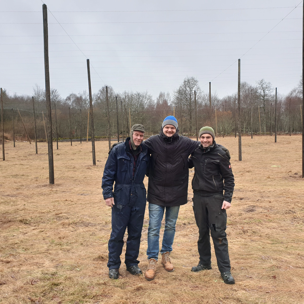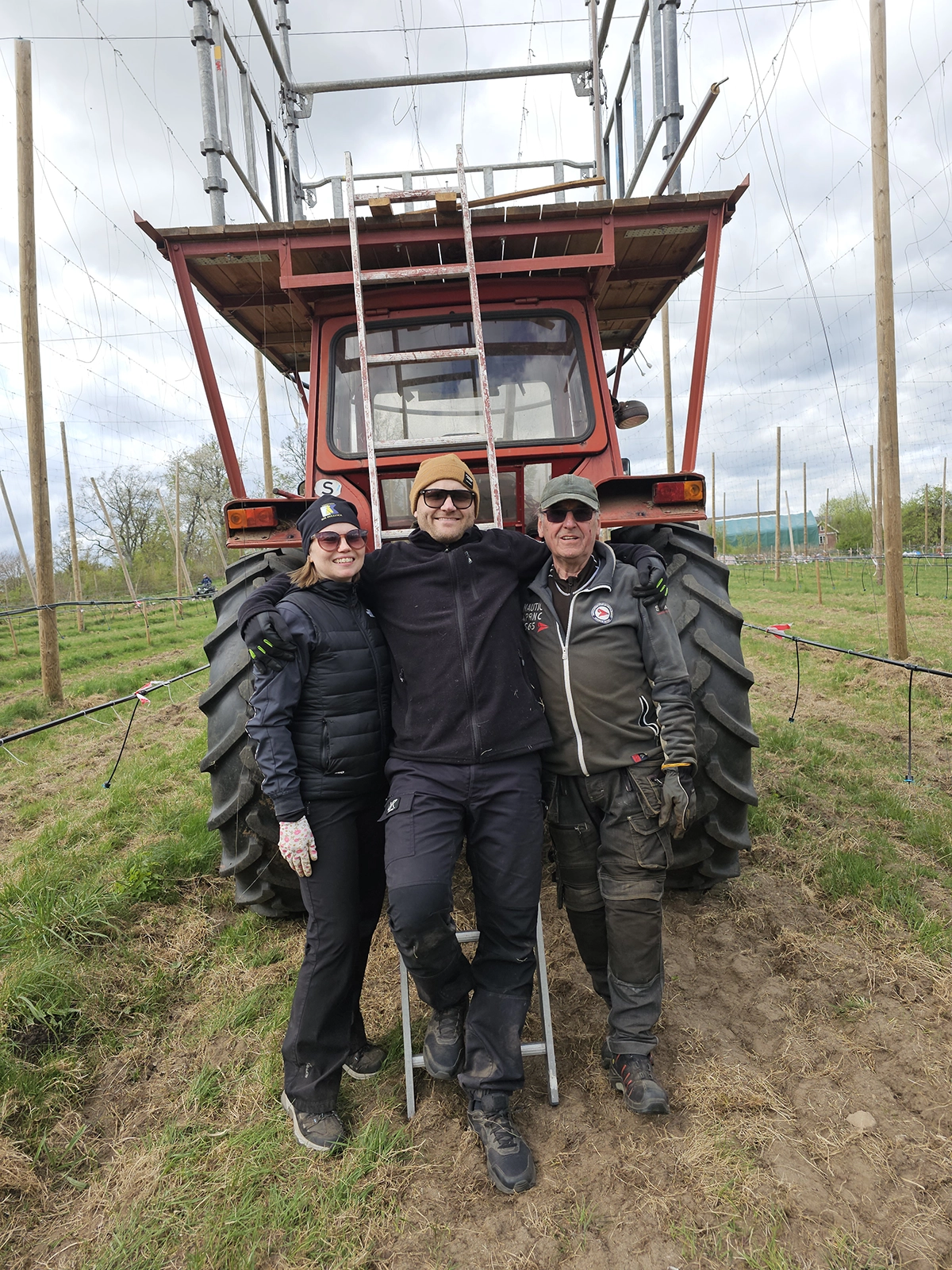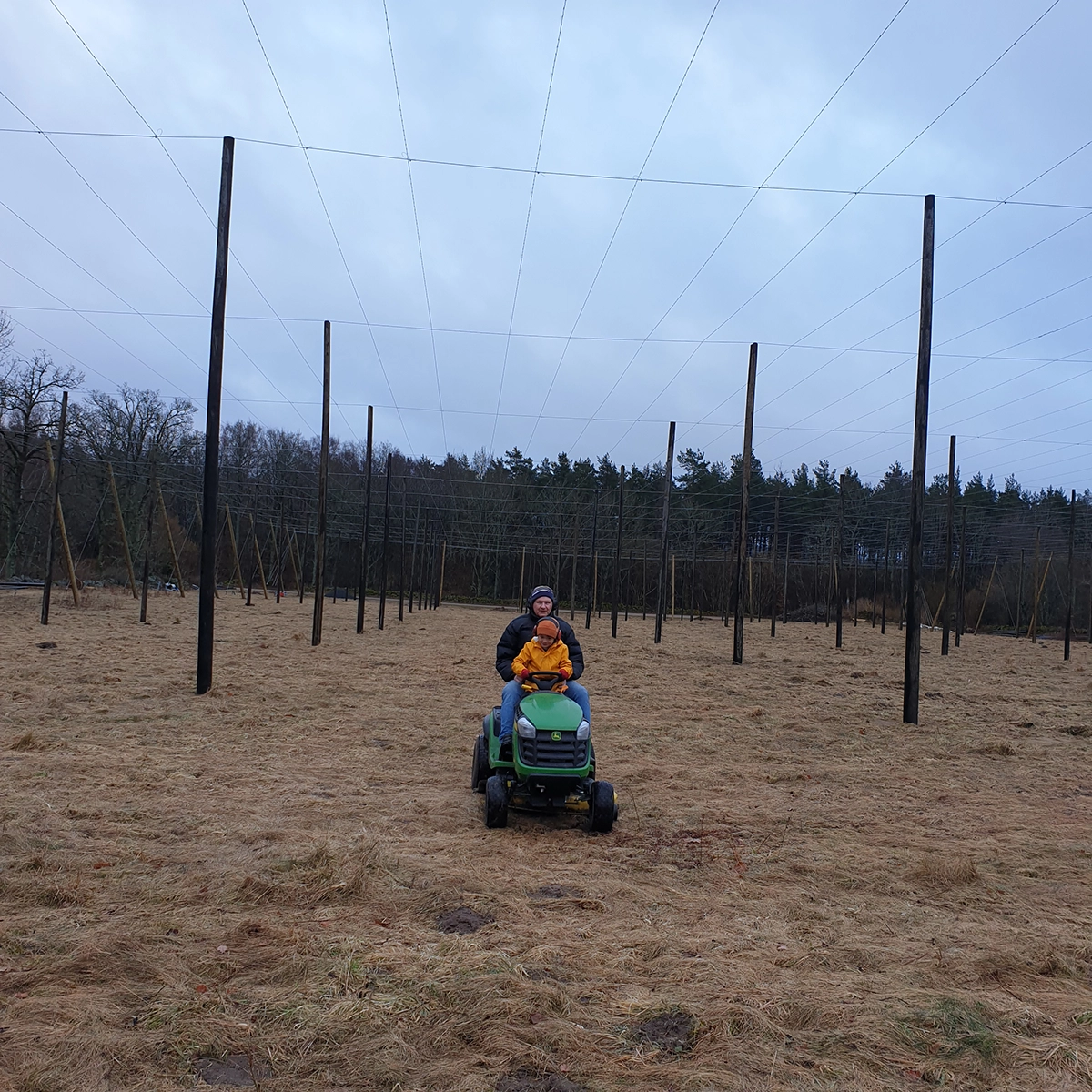 Vi är en familj som tillsammans driver Nordic Hops – jag, min fru, mina föräldrar och våra två söner på 12 år och 9 månader. Våra plantor odlas hantverksmässigt – och vi använder inga bekämpningsmedel. Marken vi odlar på har funnits i familjen i över tio generationer, och vår strävan är att behandla den med omsorg så att den kan leva vidare i många generationer till.